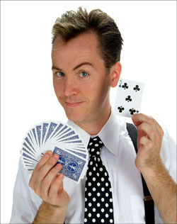 David Oliver's unique style of presenting magic has been witnessed by thousands of people around the globe for well over a decade. David will amaze and amuse you with his award-winning sleight-of-hand and onstage magic. Watch in disbelief as fluttering white doves appear and disappear right under your nose. Amid the laughter and applause, you will witness incredible feats of modern and classic magic performed live, onstage! You will actually feel the magic happen right in your own hands! For almost twenty years, this neoclassic artist has entertained audiences on cruises, in hotels and at resorts to rave reviews. Colleges, universities and corporate events across the U.S. have asked David to come back to perform again and again. You may have seen David on one of many television appearances, including recently, when his magic was featured on the Discovery Channel and also "The Early Show" on CBS. For the past six years, David Oliver has been the most requested guest performer in Broadway's longest-running magic show, "Monday Night Magic" in New York City.