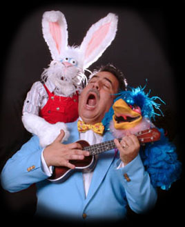 Mr. Sunshine started performing when he was 8 years old. His parents bought him a "Jerry Mahoney" Ventriloquist puppet from the Sears catalogue as a Christmas gift. They thought he would play with it, and then lose interest. They began to worry when he started doing shows for his school and other local organizations. They haven't stopped worrying since. In college, he started playing the Ukulele and combining it with Ventriloquism, created a wonderful show that has been entertaining people for over 30 years. He headlines at theatres, clubs and on television. He has performed on national television with Bill Cosby, and opened on tour for Billy Crystal. The New York Daily News says, "He is hilarious and a true original. You'll never see anyone like him!" He is the slightly better looking cousin of Tiny Tim.